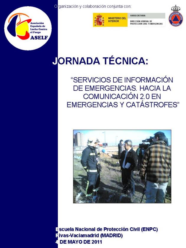 El 4 de mayo ASELF, en colaboración con la Escuela Nacional de Protección Civil, celebra la Jornada Técnica 'Servicios de Información en Emergencias. Hacia la Comunicación 2.0 en Emergencias y Catástrofes', la primera acción formativa generada por el Grupo Técnico de Trabajo de Gestión de la Información en Emergencias y Catástrofes, creado recientemente en la Asociación.