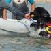 Maniobra de rescate de cuerpo sumergido con perros
