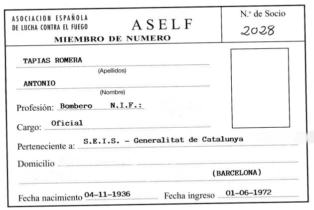 Desde la Asociación Española de Lucha Contra el Fuego informamos que ha fallecido el pasado fin de semana el socio Antonio Tapias Romera de 75 años de edad. Antonio era socio de ASELF desde el año 1972.
